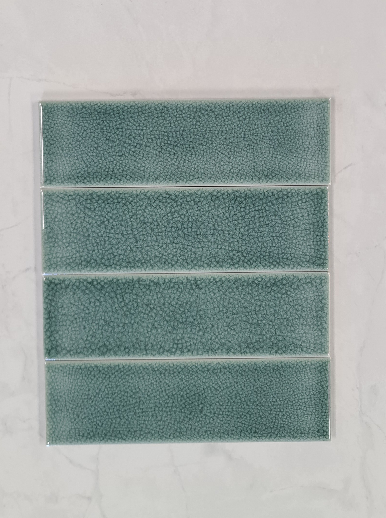 This small subway tile boasts a charming crackle glaze, available in two soothing colour options: chalk and soft green. Perfect for feature walls, its vintage-inspired texture and subtle hues add depth and character to any space, creating a distinctive focal point. (Not suitable for heat sensitive areas).